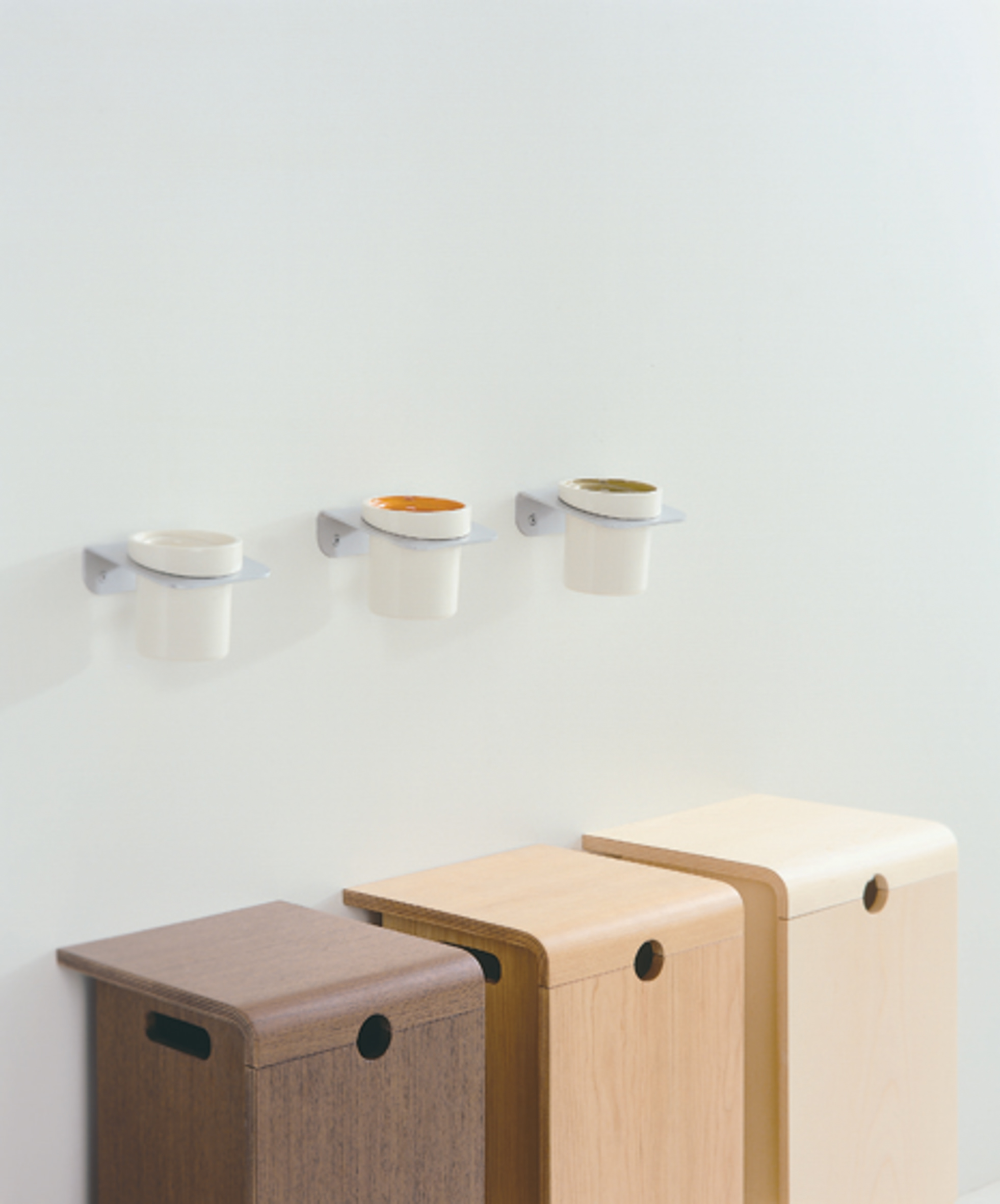 Its wall-mounted system keeps surfaces clear, simplifies cleaning, and enhances the visual order of the space. Details such as precision-fitted lids and high-quality movable parts reflect a level of craftsmanship built to withstand daily use without compromising beauty.